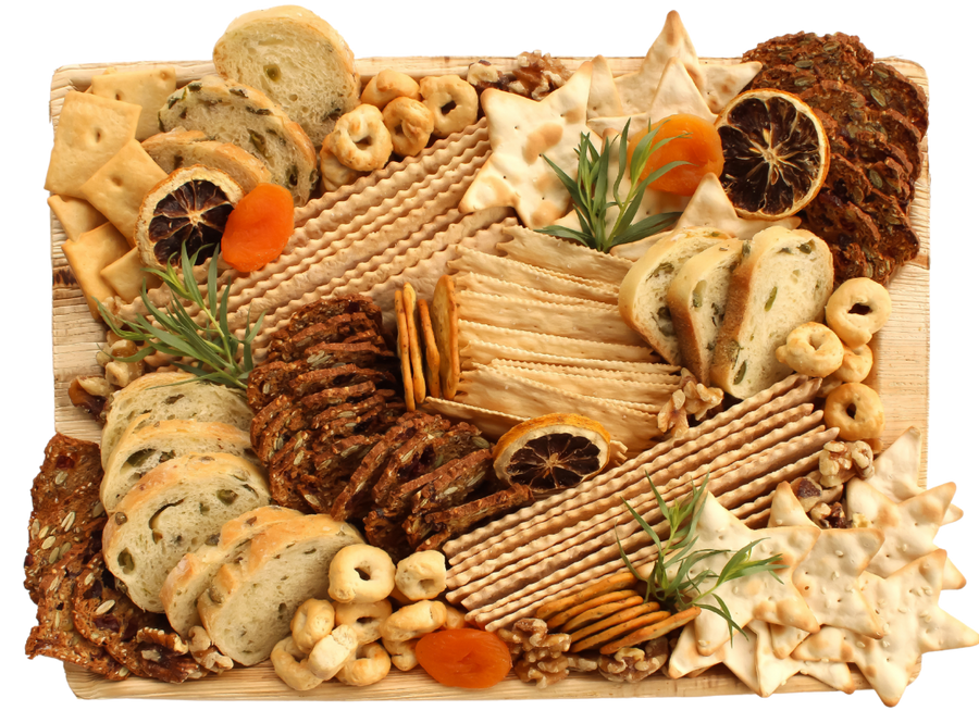 Our Cracker Board steps in when you want crackers artfully displayed—and with variety! Comes on a bamboo platter (10" × 14"), beautifully arranged, and includes all the crackers you'd normally get with your cheese board—plus more.